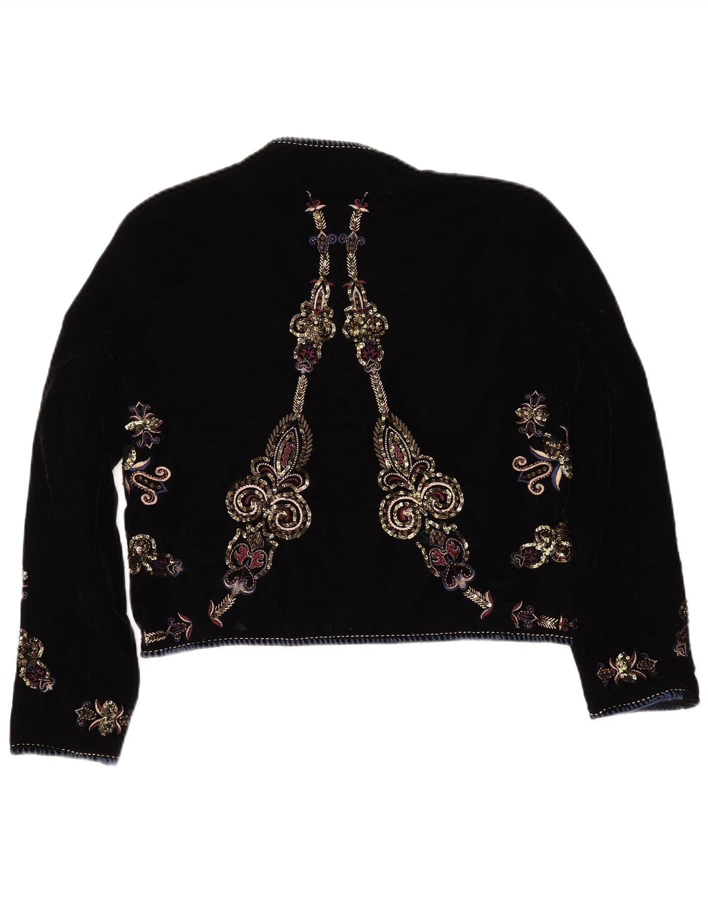 ZARA Chaqueta Bolero Abierta De Terciopelo Para Mujer UK 46 Large Black Paisley